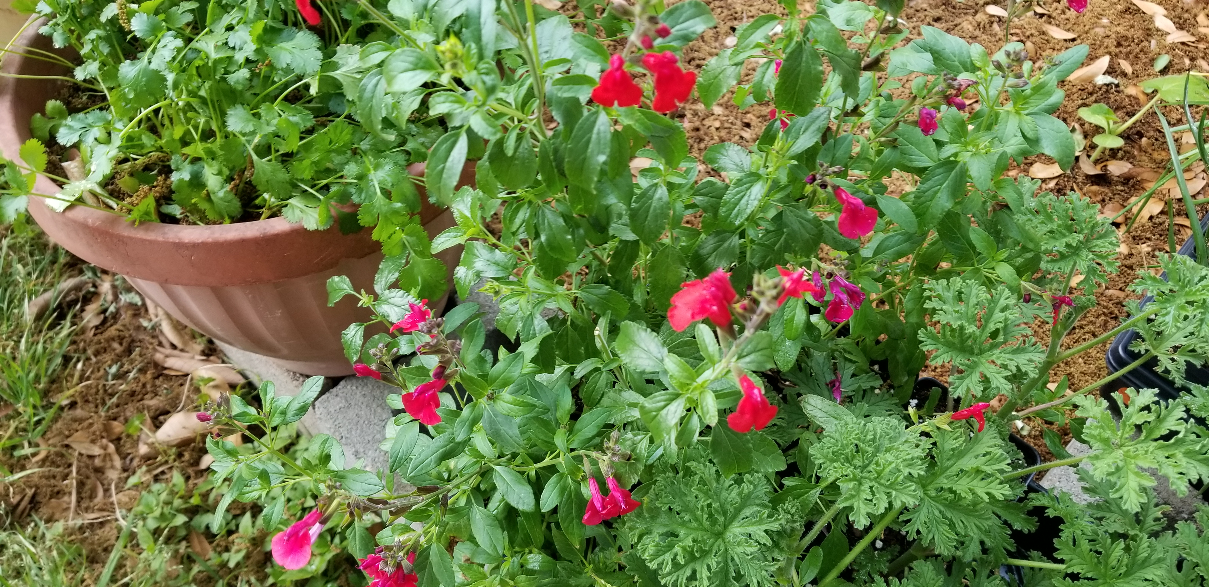 A member of the geranium family, citronella plant is said to repel mosquitoes and insects due to the smell and oil in its leaves. Citronella grows into a nice green bush and will cover and area up to 4 feet. They can be planted in a large pot and prefer to be on the dry side. They can over winter by being protected from frost or brought in for protection.