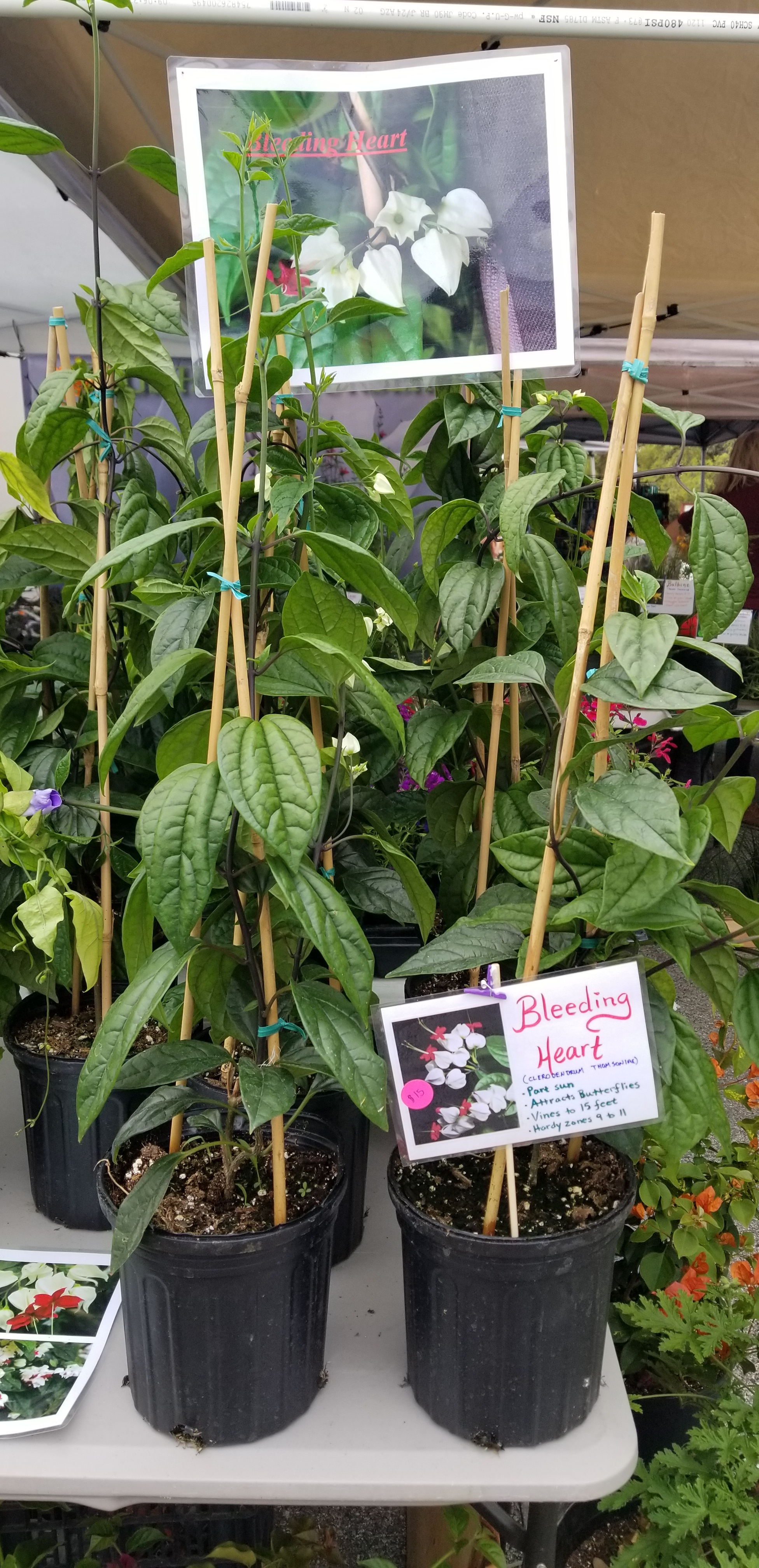 Bleeding heart vine is a species of flowering plant in the genus Clerodendrum of the family Lamiaceae, native to tropical west Africa from Cameroon west to Senegal. It is an evergreen growing to 12 feet tall, with ovate to oblong leaves 4 in. long.